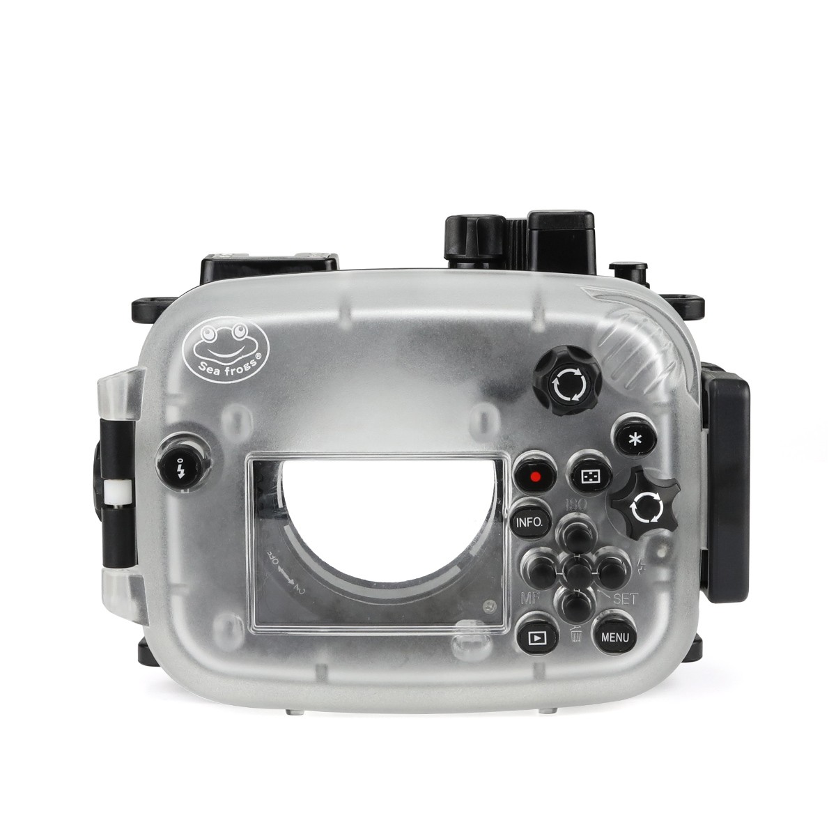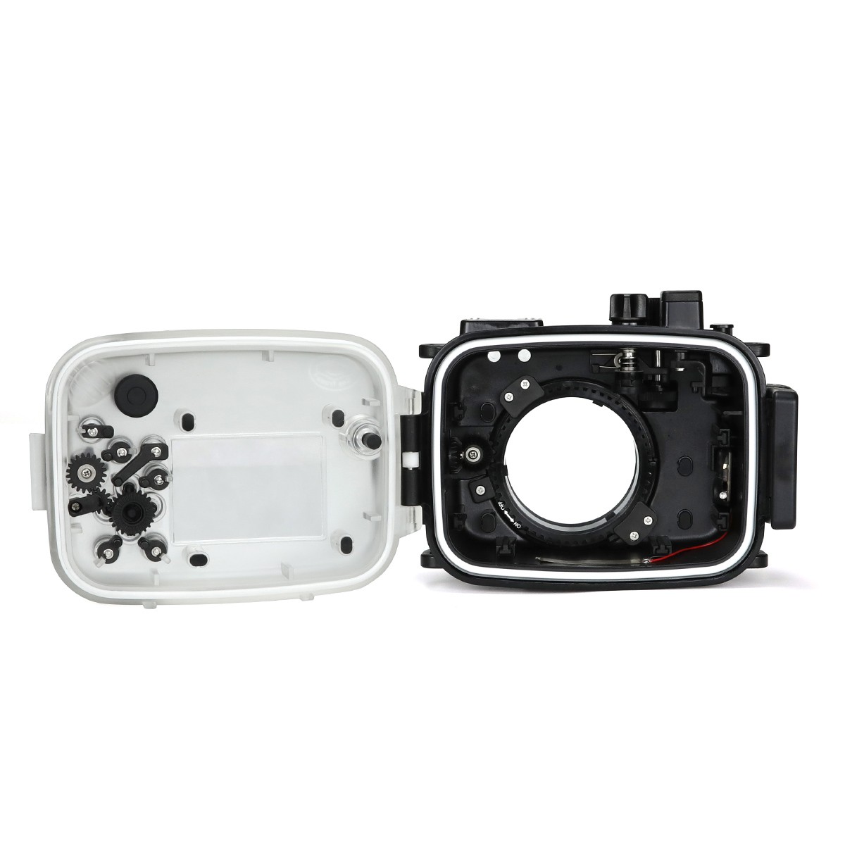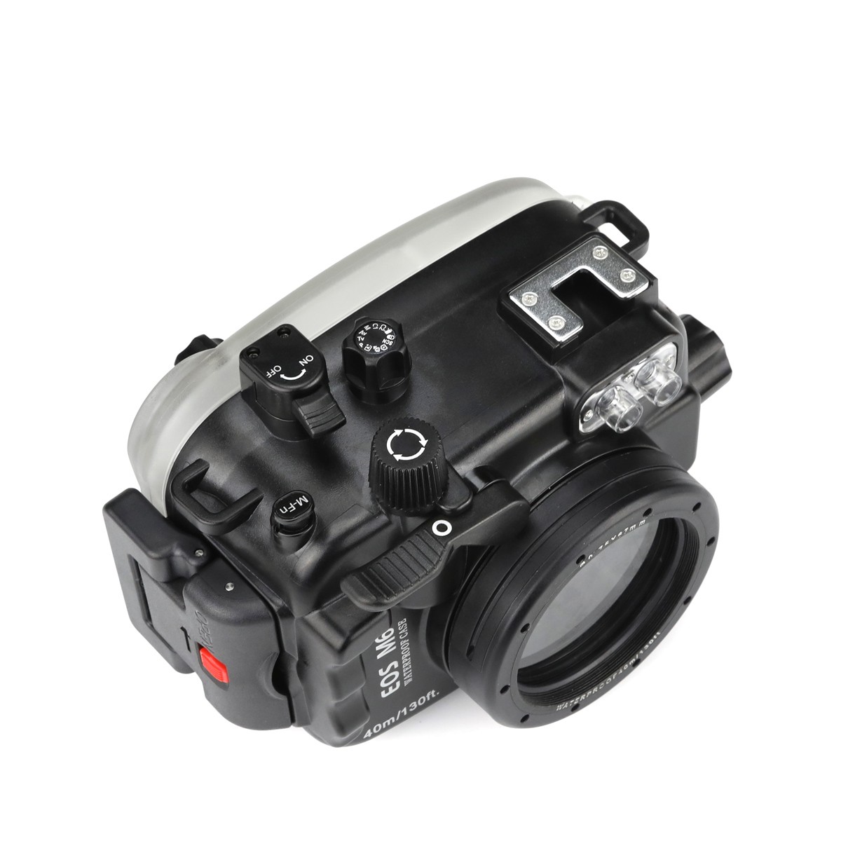 The shock-proof underwater housing is made of black polycarbonate with a window made of tempered glass to be admitted to a depth of 40 meters.